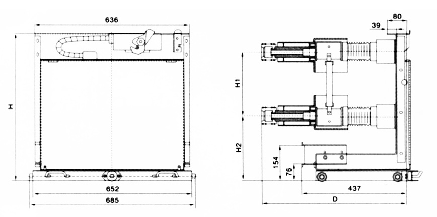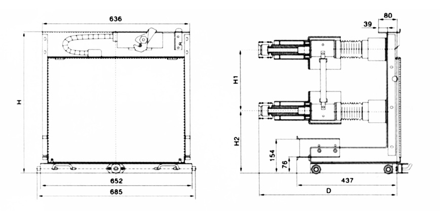 630A~1250A計(jì)量手車外形尺寸