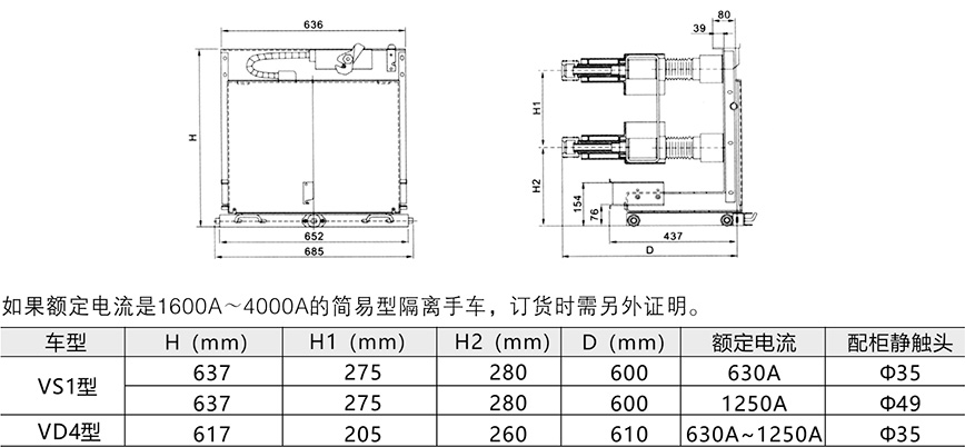 4000A隔離手車外形尺寸