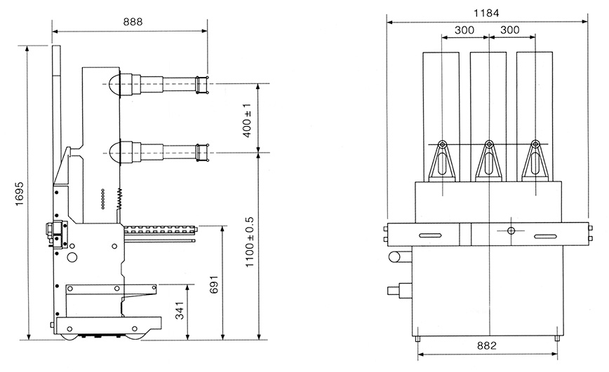 斷路器與操動機構(gòu)采用上下布置結(jié)構(gòu),有效地降低了斷路器的深度。